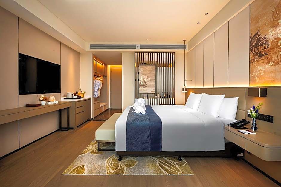 +1 (888) 385-8465Discover luxury and comfort at the Latsavong Wanda Vista Vientiane, a stunning 5-star hotel nestled just 3,7mi from the vibrant city center of Vientiane, Laos. Designed to offer an unforgettable stay, this hotel features spacious, soundproof rooms with modern amenities like air conditioning, free WiFi, and bathtubs where you can unwind after a day exploring the city. Enjoy breathtaking views from upper floors, or take advantage of the outdoor swimming pool and kids’ pool, both free for guests to relax and splash around in during sunny Laos days.